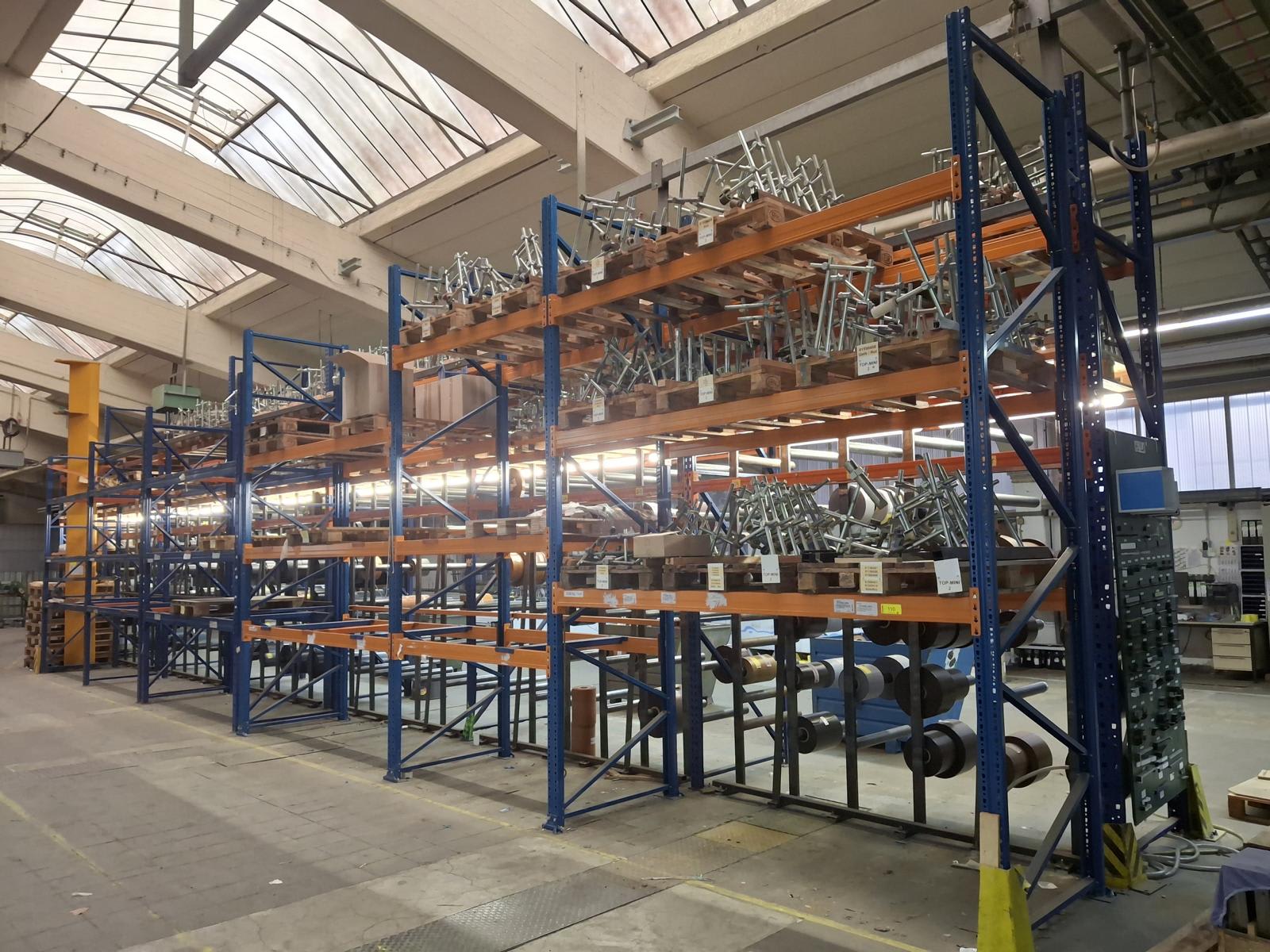 - Regálová jednotka pro těžké zatížení (bez obsahu!)Poplatek za vazbu a služby: 600 € (EURO) Regálová jednotka se skládá z: 7 x příček a 13 x nosníků. Rozměry: D x Š: 110 x 1440 cm. Obsah není součástí dodávky!