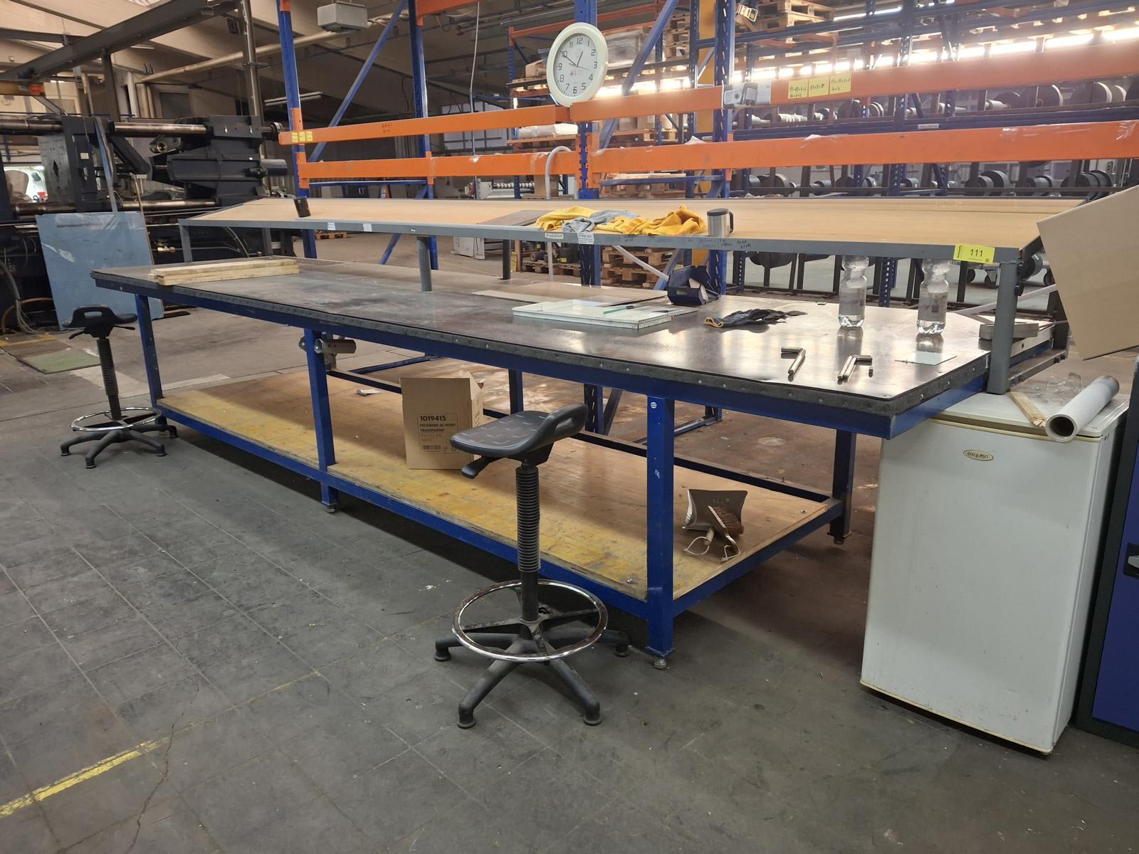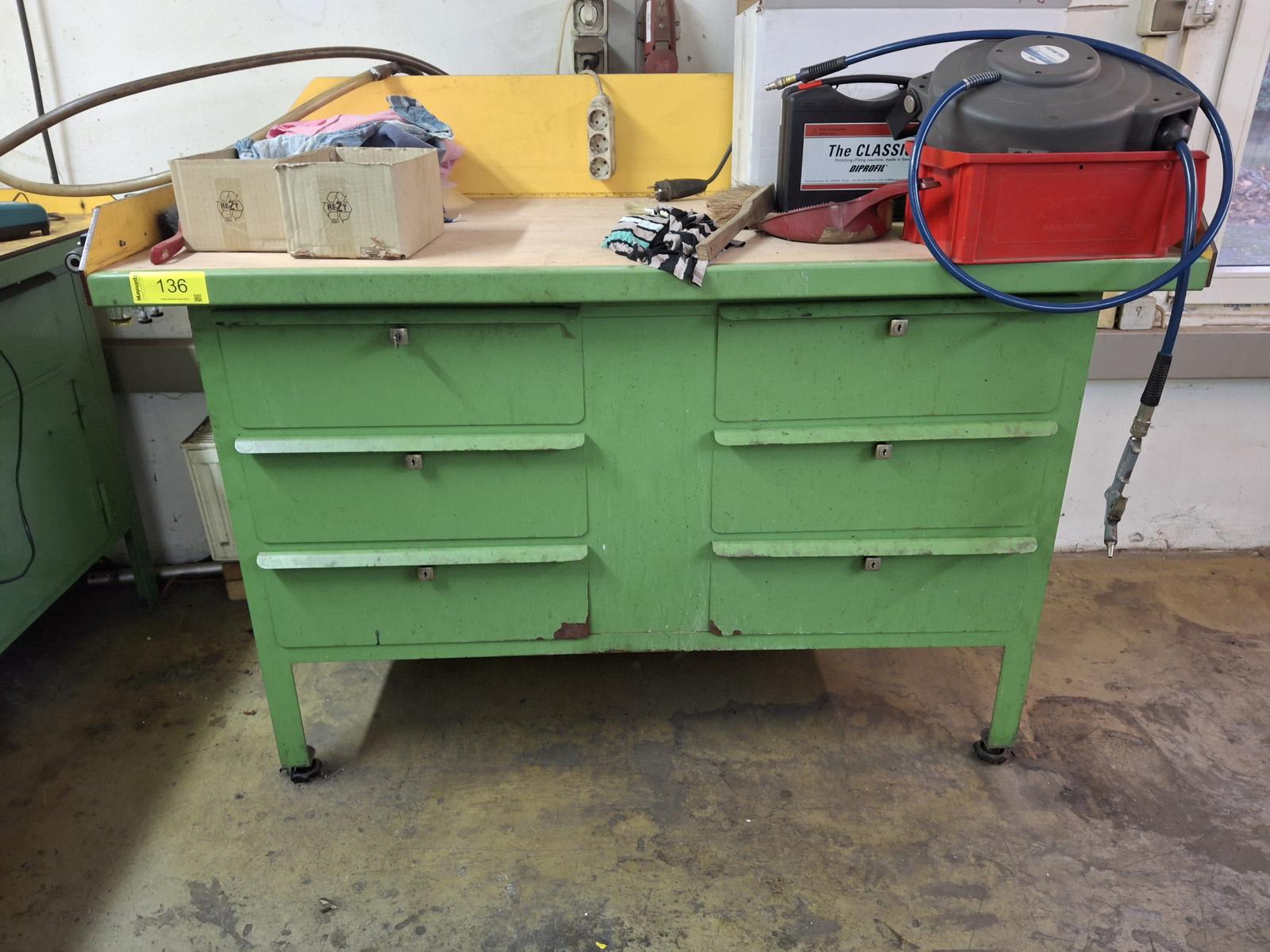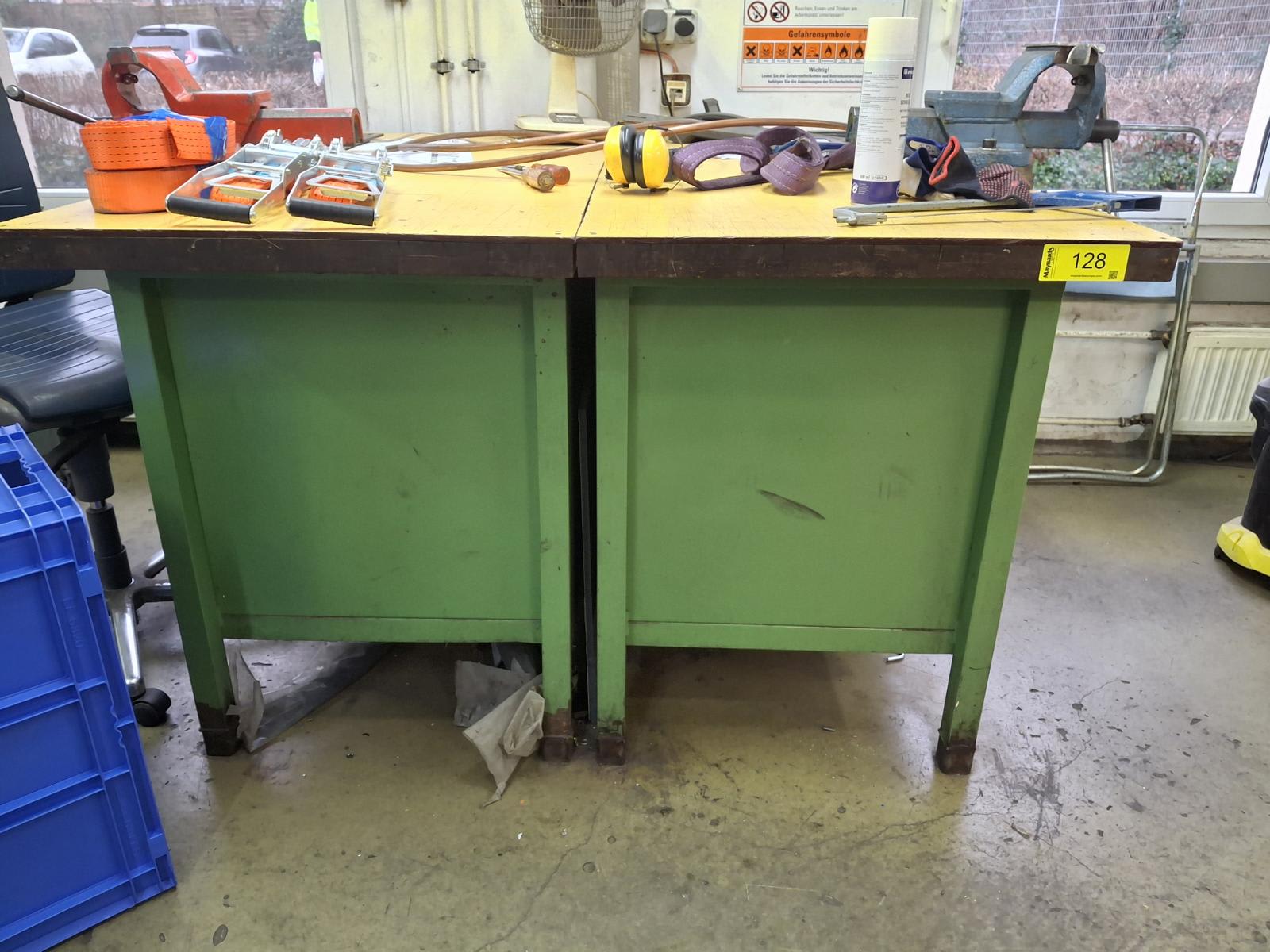 - (2) Pracovní stůl se svěráky a vybavenímPoplatek za vázání a servis: 50 € (EURO) Obsah zahrnuje: nářadí, šroubováky, kleště a různé drobnosti