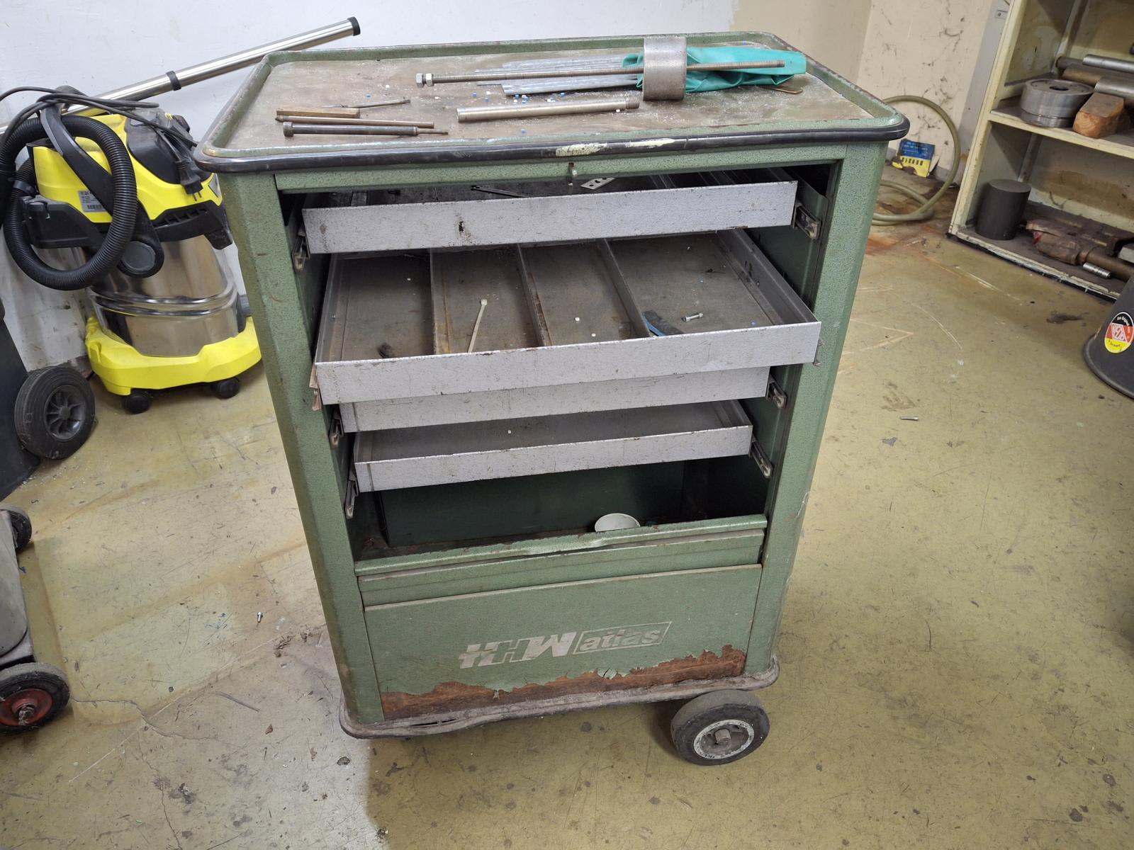 - Pracovní skříň (mobilní) s obsahemPoplatek za závazné zpracování a služby: 50 € (EURO) Obsah zahrnuje: náhradní díly, kola a různé drobnosti. Obsah se může lišit.