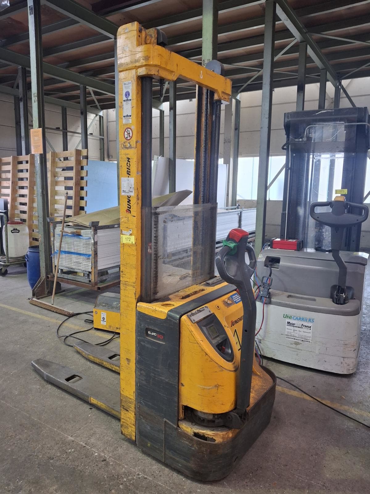 - Elektrický vysokozdvižný vozík Jungheinrich EJC 10G-115-360ZT | 2000Poplatek za vázání a služby: 150 € (EURO) Maximální nosnost: 1000 kg; Vzdálenost těžiště nákladu: 600 mm