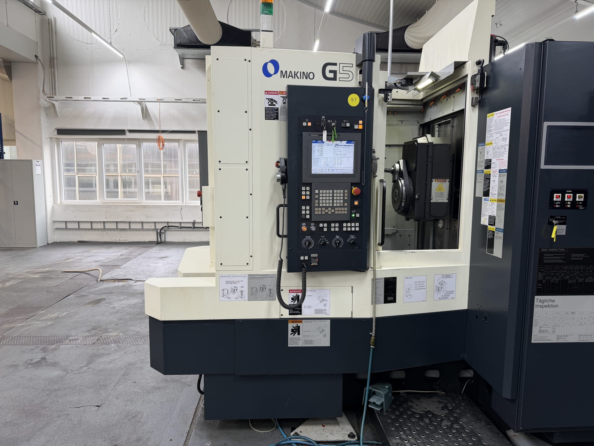 The Makino G5 (2022), serial 3154, is a high-precision CNC 5-axis universal machining center designed for grinding, milling, and drilling of demanding metallic components. Commissioned in March 2023, the machine features Makino Professional 5 control and enables simultaneous 5-axis machining with outstanding accuracy and repeatability. Equipped with a high-torque spindle up to 12,000 rpm, automatic tool changer, and integrated dressing unit, it is optimized for creep feed grinding and hard machining applications. Including hydraulic unit, oil cooler, and air dryer, this system is ideally suited for precision gearbox components, delivering excellent surface quality, reliability, and productivity. Ends: 13 May 2026 at 14:00 UTCView Item - LISTING 2950004