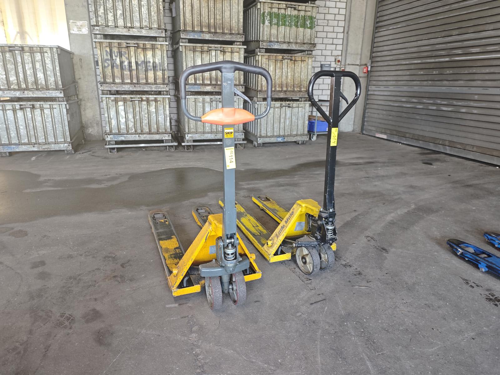- (2) PalettenhubwagenGebühren für Demontage/Handhabung und Verladung: 30 € (EURO) Gebrauchte Palettenhubwagen zu verkaufen, JUNGHEINRICH DELTA26 2021 2600 kg und YALE HU Profi 25 TA 2010 2500 kg, manuelle Palettenhubwagen für Lager- und Produktionslogistik, Industrieauktionsausrüstung...