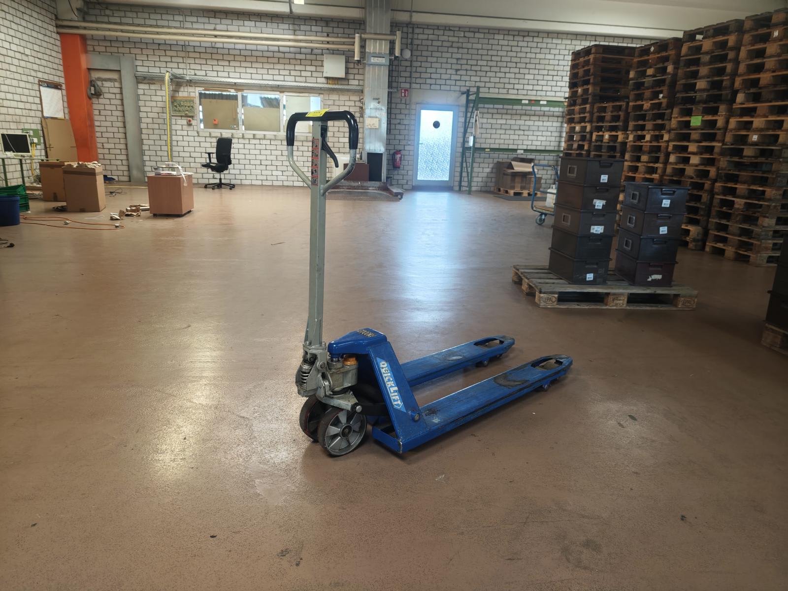 - Palettenhubwagen QUICKLIFT | 2007Gebühr für Demontage/Handhabung und Verladung: 20 € (EURO) Gebrauchte QUICKLIFT Palettenhubwagen 2007 zu verkaufen, Tragkraft ca. 2.000 kg, Gabellenbreite ca. 540 mm, Gabellenlänge ca. 1.140 mm, Industrie-Palettenhubwagen für Lager und Fertigung...