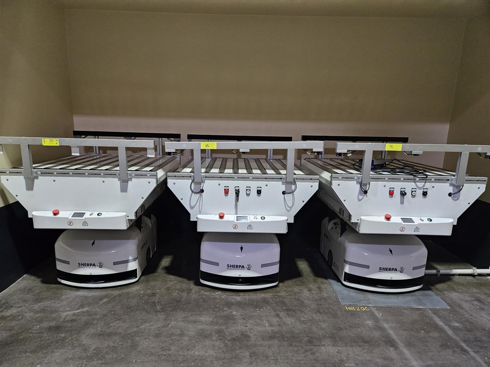- (3) Side Transfer Robot Sherpa Mobile Robotics Serie-B | 2022Maximum dimensions 1005 x 1035 mm Empty weight 75 kg Power supply 46V DC Motor power 2 x 315 W