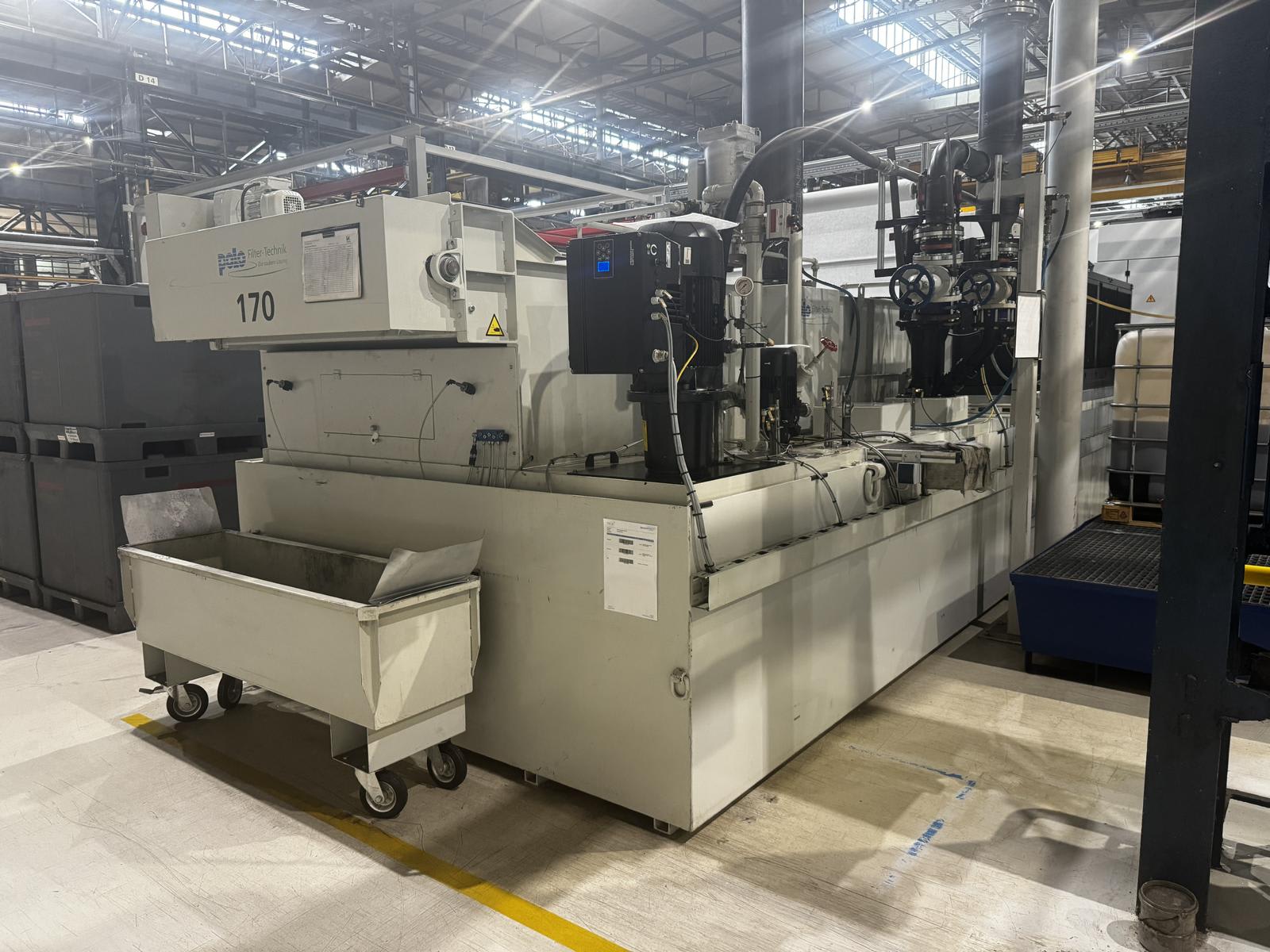 - Cooling Lubricant System with Belt Filter POLO SBH-B2.9 | 2014Designation: Filter system for oil, water, and emulsions Manufacturer: Polo Filter-Technik Bremen GmbH Type / Model: SBH-B2.9 Year of manufacture: 2014 Order No.: B14.2873 Technical specifications: Capacity: V1 = 11,000 l, V2 = 1,150 l Em...