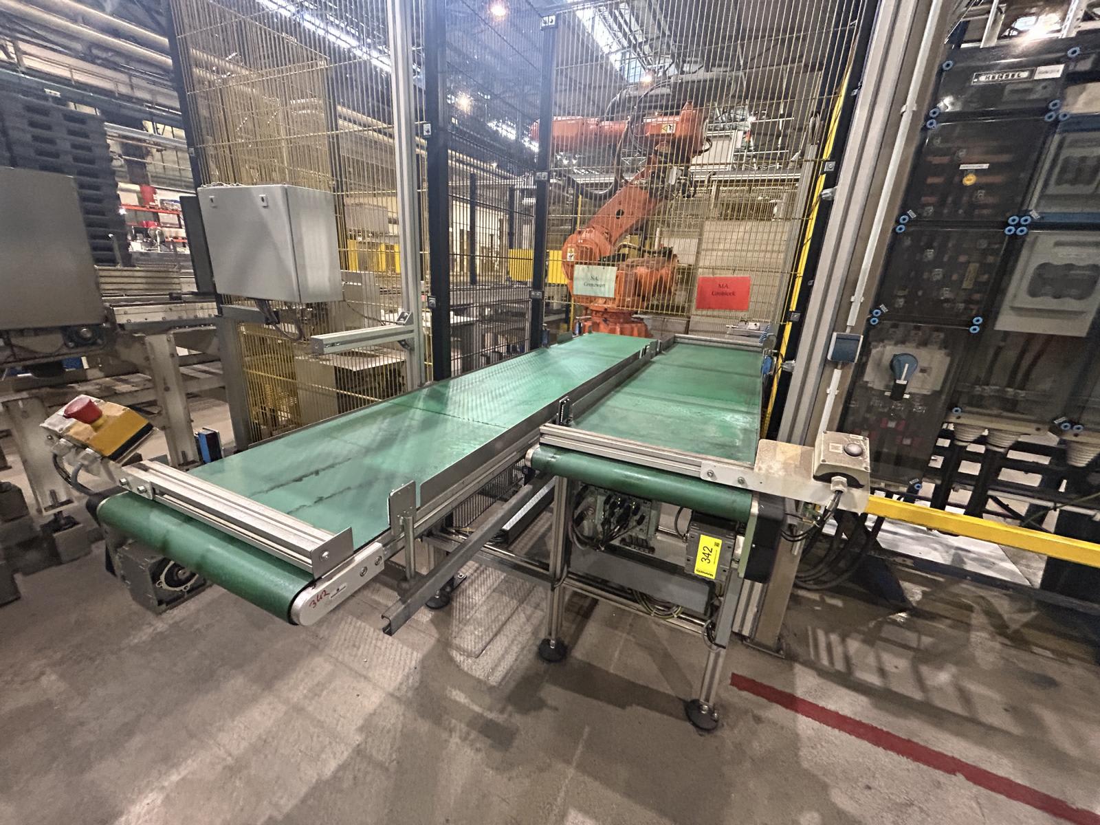 - Complete Line Conveyor System Bartsch Automation Ölwanne | 2014This Conveyor System was used for the Transport of Oil Pan parts through the machining Process of SW Machines with continuous processing. The Lot includes all attached Accessories, but not any Robot or Robot Frame and Grid/Fencing Machine...